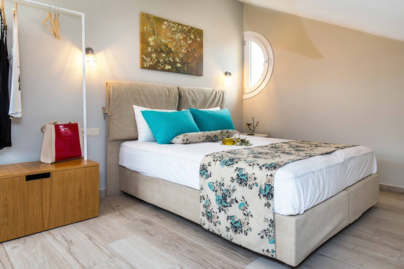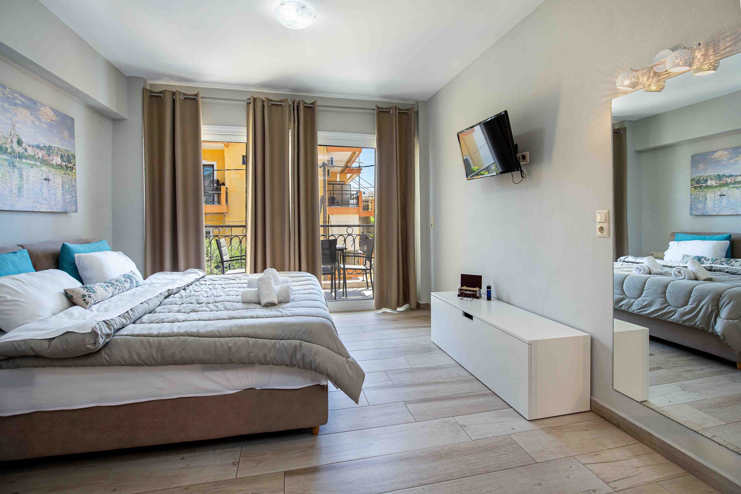 The studio is cozy and can accommodate up to two adults and one child. It features a comfotable double bed and a sofa bed, it also has a small kitchen area equipped with a kitchenette and an en-suite bathroom with a shower. Lastly, the studio has direct access to a furnished balcony overlooking the village and the beautiful natural surroundings. The studio offers all the necessary amenities that will make you feel right at home.